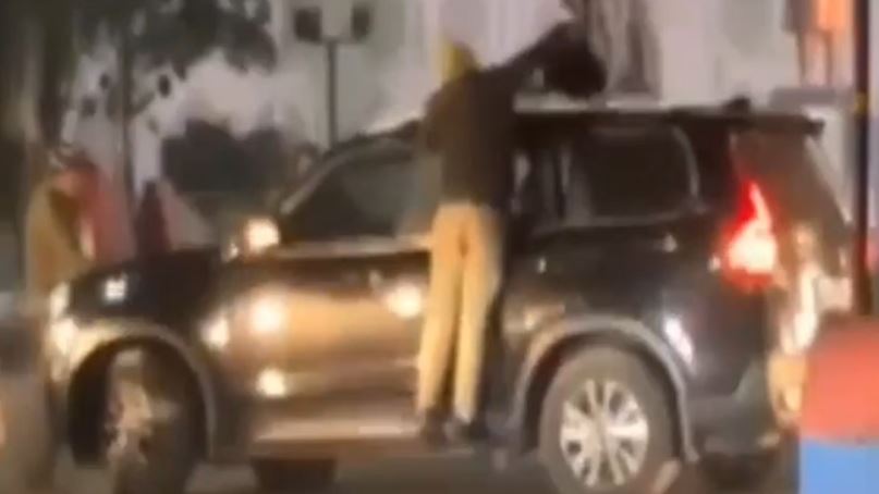 जब पुलिसकर्मी ने उन्हें रोकने के लिए गाड़ी के बोनट पर चढ़कर छत की ओर हाथ बढ़ाया तो चालक ने कार रोकने के बजाय कार की रफ्तार बढ़ा दी। वीडियो में आप देख सकते हैं कि पुलिसकर्मी गाड़ी को रोकने के प्रयास में उस पर चढ़ा ही था कि युवक उसे उसी हालत में घसीटते हुए अपने साथ ले गए। पुलिस का कहना है कि कुछ दूरी पर जाने के बाद युवकों ने पुलिसकर्मी को उतार दिया था।