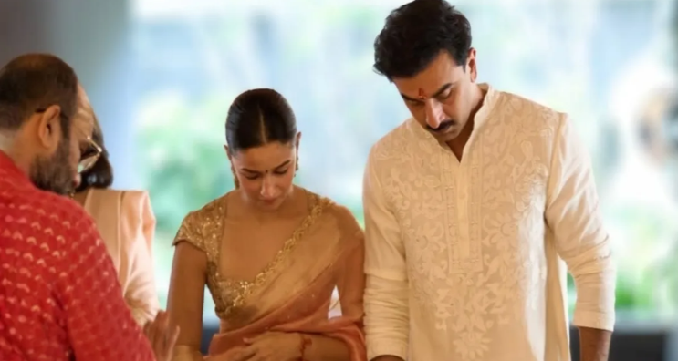 एक तस्वीर में रणबीर अपने पिता के सामने नतमस्तक होते हुए दिख रहे हैं। एक तस्वीर में नन्ही राहा गृह प्रवेश पूजा में बैठकर अक्षत हाथ में लिए दिख रही हैं। एक तस्वीर में राहा अपने पापा की गोद में हैं।