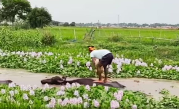वायरल हो रहे वीडियो में आप देख सकते हैं कि एक शख्स गांव के किसी तालाब में मौजूद है. उसके साथ कुछ भैंसे हैं, जो गर्मियों के मौसम में ठंडे-ठंडे तालाब के पानी का लुत्फ उठा रही हैं. ये आदमी भी इस मौके का फायदा उठाता है और इनमें से एक भैंस के ऊपर खड़ा हो जाता है. भैंस पानी में तैरती रहती है और उसके ऊपर चढ़ा शख्स फ्री में रिवर राफ्टिंग के मज़े लेता है. ये नज़ाारा काफी दिलचस्प है और देखकर आप हंसे बिना नहीं रह पाएंगे.
