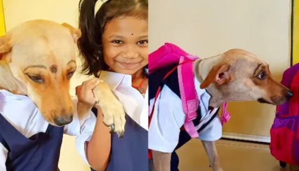 वीडियो में आप देख सकते हैं कि बच्ची ने जैसी यूनिफॉर्म पहनी है, ठीक वैसी ही यूनिफॉर्म कुत्ते ने भी पहनी है. इसके अलावा उसकी आईब्रो भी बनी है और माथे पर बिंदी भी बना दी गई है. उसके पीठ पर गुलाबी रंग का बैग भी टांग दिया गया है. कुत्ते के चेहरे से लग रहा है जैसे उसे स्कूल जाने का मन नहीं है. उसके एक्सप्रेशन बहुत कमाल के लग रहे हैं. वो इतना क्यूट लग रहा है कि कुछ कहा नहीं जा सकता. बच्ची भी उसे बहुत प्यार करती नजर आ रही है.