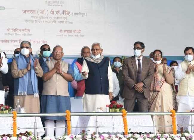 20 साल का लंबा इंतजार आखिरकार शुक्रवार को खत्म हो गया। मुंगेरवासियों को डबल डेकर पुल की सौगात मिल गई। सीएम नीतीश कुमार और केंद्रीय मंत्री नितिन गडकरी ने जिले के लाल दरवाजा से मुंगेर खगड़िया रेल-सह-सड़क पुल का लोकार्पण किया। बड़े से मंच में बिहार सरकार के दोनों डिप्टी सीएम और मुंगेर सांसद ललन सिंह समेत मंत्री और विधायक मौजूद रहे। वहीं, दूसरी तरफ केंद्रीय मंत्री नितिन गडकरी वर्चुअली इस कार्यक्रम से जुड़े। रिमोट द्वारा लोकार्पण के शिलापट का पर्दा हटाया गया। इस लम्हे को साक्षात देखने के लिए बड़ी संख्या में लोग लाल दरवाजा पहुंचे।