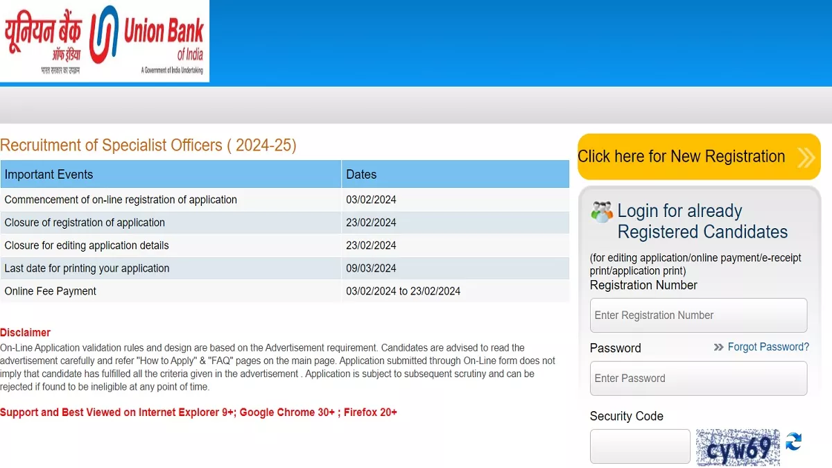 जो भी उम्मीदवार इस भर्ती के लिए पात्रता पूरी करते हैं वे बिना देरी करते हुए तुरंत ही बैंक की ऑफिशियल वेबसाइट www.unionbankofindia.co.in पर या इस पेज पर उपलब्ध करवाए गए डायरेक्ट लिंक से भर सकते हैं।