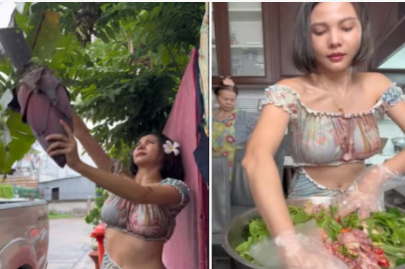 इस लड़की का नाम क्रुआ नुनुट (Krua Nunut) है, जो इंस्टाग्राम पर @nut.nutcharat नाम से मौजूद है. क्रुआ अक्सर खाना बनाने का वीडियो शेयर करती हैं. इस बार उन्होंने लोगों को एक नए डिश से इंट्रोड्यूस करवाया, जिसका नाम है ‘चिकन के साथ स्टीम्ड केले का फूल (Steamed Banana Blossom with Chicken)’. इस डिश को बनाने के लिए क्रुआ पहले केले का फूल काटती हैं और फिर पत्ता काटती हैं. इसके बाद वो मिर्च तोड़ती हैं. इन सभी का वो छोटे-छोटे टुकड़े करती हैं . फिर उसे मिक्सर ग्राइंडर में मिक्स करती हैं. फिर अन्य मसालों को चिकन में मिला देती हैं और एक साथ हाथ से मिक्स करती हैं. इसके बाद केले के पत्तों में उस मिक्चर को लपेटकर मोमोज की तरह पकाती हैं. पक जाने के बाद वो इसे लोगों को खाने के लिए देती हैं.