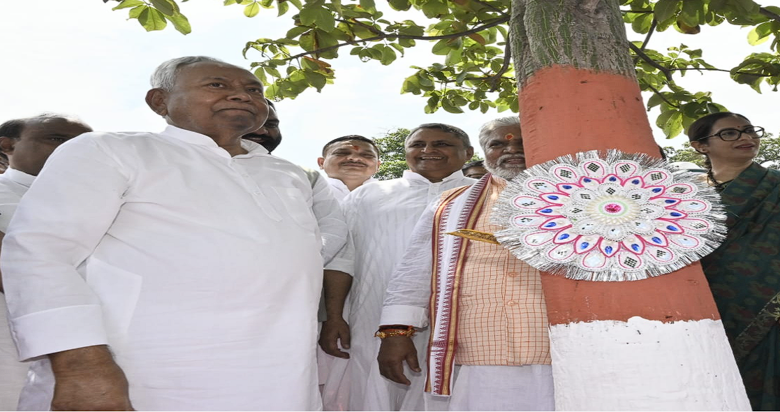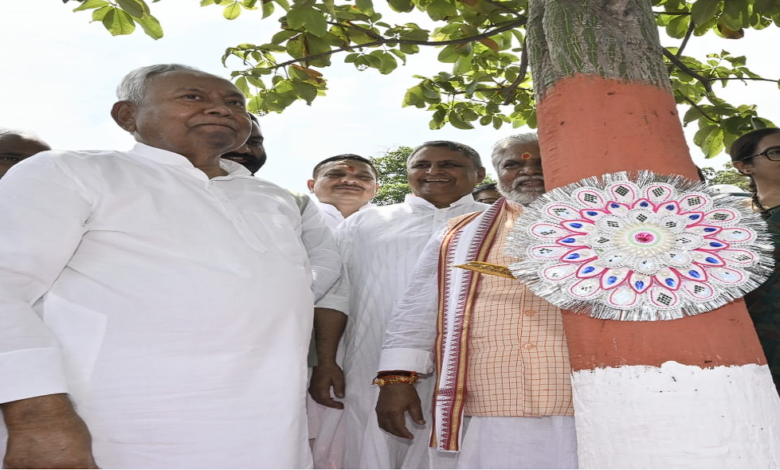 रक्षा बंधन पर CM नीतीश ने वृक्ष को बांधा रक्षा सूत्र