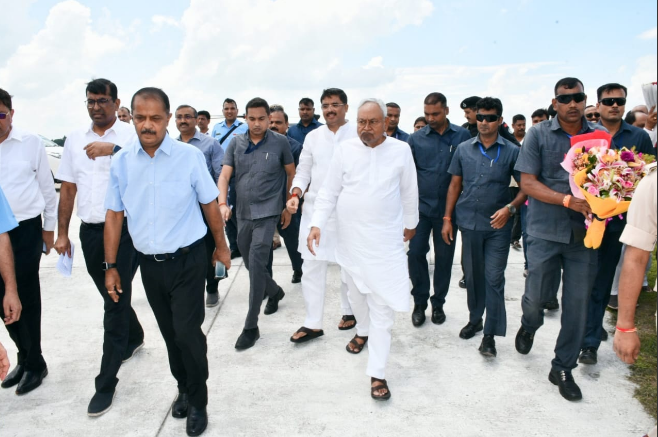 सीएम नीतीश ने पूर्णिया के चूनापूर सैन्य हवाई अड्डा का किया निरीक्षण