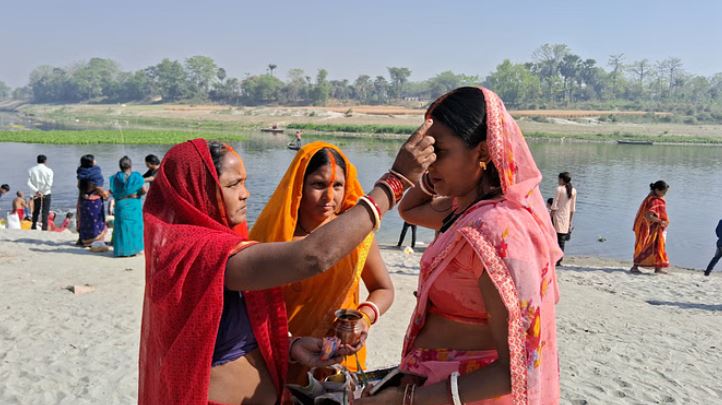 मुजफ्फरपुर में घाटों पर उमड़ी छठ व्रतियों की भीड़