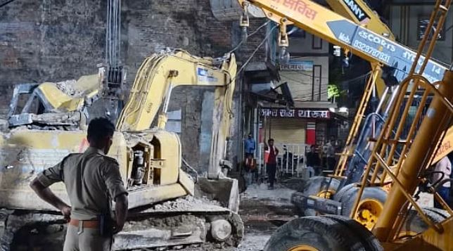 दमोह: 15 दिन पहले धराशाई हुए बरांडा के मलवे से निकाली गई पोकलेन मशीन