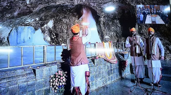 जम्मू-कश्मीर के एलजी मनोज सिन्हा ने भी श्रीनगर स्थित राजभवन में अमरनाथ यात्रा की वर्चुअल प्रथम पूजा में हिस्सा लिया।