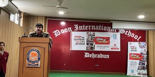 देहरादून के दून इंटरनेशनल स्कूल में मंगलवार को अमर उजाला की ओर से पुलिस की पाठशाला का आयोजन किया गया। इस दौरान डीएसपी अनिल कुमार जोशी ने बच्चों को साइबर क्राइम से सुरक्षित रहने के टिप्स दिए। उन्होंने कहा कि अगर वर्दी की नौकरी करनी है तो उसके लिए अभी से तैयारी करनी होगी।