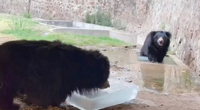 दिल्ली जू : भालू उठा रहा आइसक्रीम का लुत्फ और हाथी ले रहे तरबूज का स्वाद