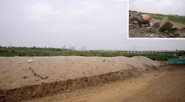 दिल्ली-मुंबई एक्सप्रेस-वे परियोजना के चलते यहां यमुना का बॉटल नेक बन गया है। पूरा बाढ़ क्षेत्र निर्माण सामग्री और मलबे से पटा है। तैमूर नगर एक्सटेंशन, जाकिर नगर, बटला हाउस, अबुल फजल एनक्लेव से लेकर ओखला बैराज तक दाहिनी ओर निर्माणाधीन एक्सप्रेस-वे और बाईं ओर मलबा है। यमुना को जलाशय की में तब्दील कर दिया गया है।