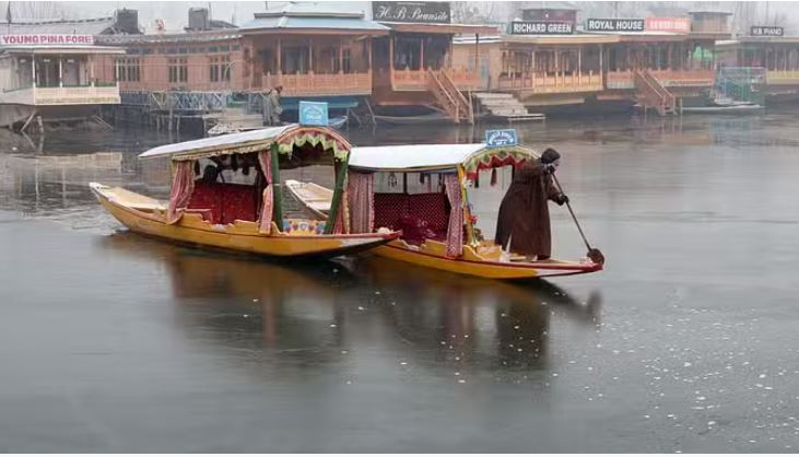 डल झील की बर्फीली परतों से पर्यटक खुश, शिकारा चालक और हाउसबोट मालिक परेशान