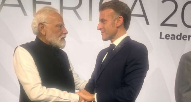 दक्षिण अफ्रीका के जोहान्सबर्ग में चल रहे G20 शिखर सम्मेलन के दौरान प्रधानमंत्री नरेंद्र मोदी और फ्रांस के राष्ट्रपति इमैनुएल मैक्रों की मुलाकात हुई। मुलाकात के बाद दोनों नेताओं ने एक-दूसरे के प्रति आभार व्यक्त किया और भारत–फ्रांस दोस्ती की मजबूती पर जोर दिया। राष्ट्रपति मैक्रों ने इस मुलाकात के बाद सोशल मीडिया प्लेटफॉर्म एक्स पर पोस्ट कर जानकारी दी।