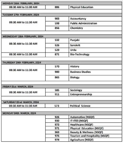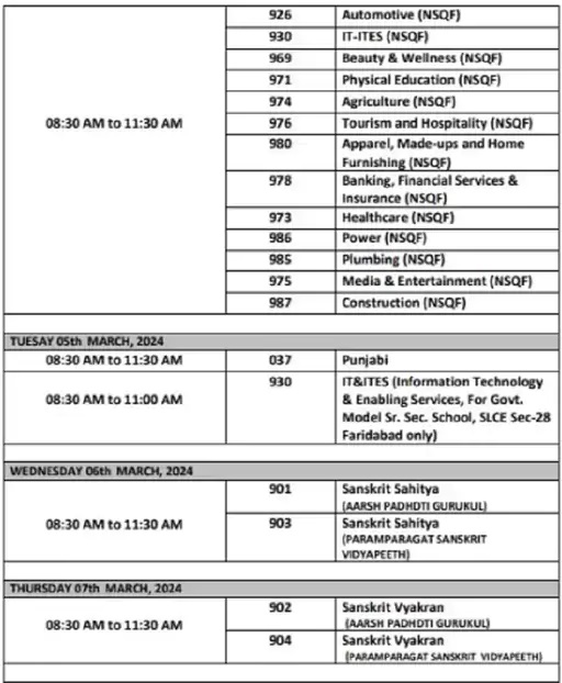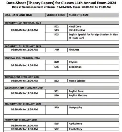 वहीं दोनों कक्षाओं की परीक्षा एक समय पर शुरू और खत्म होगी। परीक्षा शुरू होने का समय 8:30 मिनट है, खत्म होने का समय 11:30 बजे है। टाइम टेबल के अनुसार, 9वीं क्लास की परीक्षा अंग्रेजी विषय से शुरू होगी तो 11वीं की परीक्षा हिंदी विषय के साथ शुरू होगी। हरियाणा विद्यालय शिक्षा बोर्ड के चेयरमैन डॉ. डीपी यादव ने ये डेटशीट जारी की है।