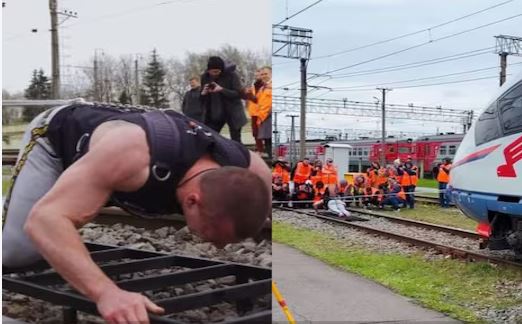 शख्स एक पटरी पर मौजूद है और उसके पीछे एक ट्रेन खड़ी है. एक रस्सी उसके शरीर पर बंधी है और दूसरे छोर से ट्रेन पर बंधी है. अपने पूरे शरीर के बल से वो ट्रेन को खींच रहा है. जिस तरह उसके शरीर की नसें दिख रही हैं, उसे देखकर तो यही लग रहा है कि वो भयंकर जोर लगा रहा है. वो अपनी इस कोशिश में कामयाब भी होता है और ट्रेन को पटरी पर हिला लेता है.