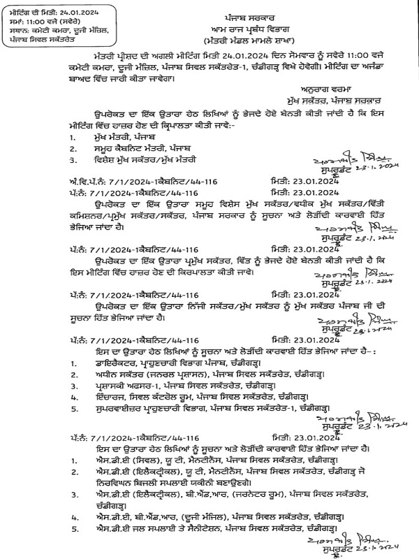 पंजाब कैबिनेट की अहम बैठक आज