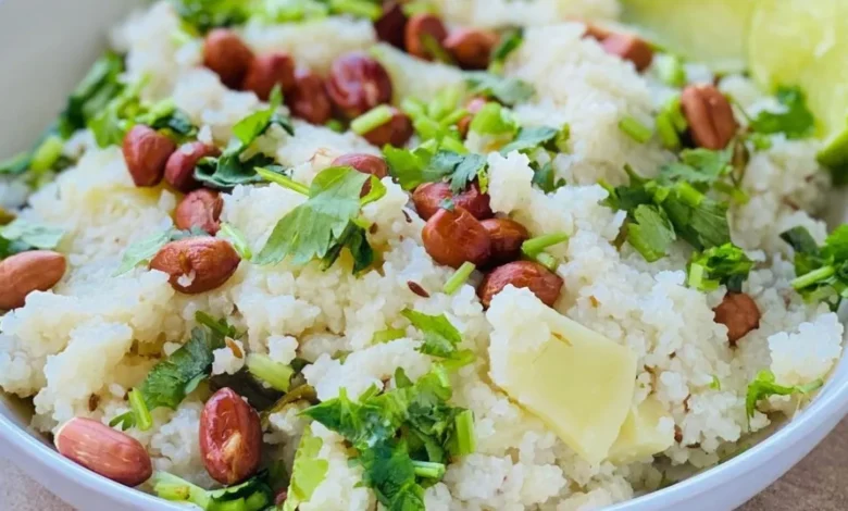 जब पानी सूख जाए तो उबले और कटे हुए आलू और कुटी हुई मूंगफली को धीरे से मिलाएं। फिर कुछ और मिनट तक पकाते रहें।