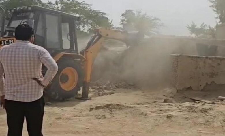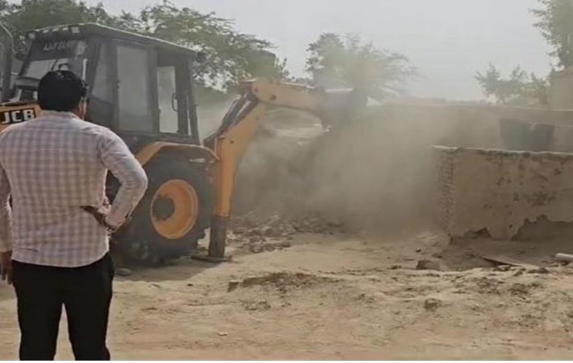 सिरसा : नशे के सौदागरों द्वारा नशे से अर्जित की गई काली कमाई तथा उनके द्वारा पंचायती जमीन पर किए गए अवैध कब्जों पर भी पीला पंजा चलाना सिरसा पुलिस ने शुरू कर दिया है। आज गांव खारी सुरेरां निवासी नशा तस्कर सुखदेव सिंह उर्फ सुखा के द्वारा अवैध रूप से पंचायती जमीन पर कब्जा कर निर्मित किए गए मकान पर बुलडोजर चलाकर ध्वस्त कर दिया गया। नशा तस्कर गांव खारी सुरेरां निवासी सुखदेव सिंह के खिलाफ ऐलनाबाद थाना में कुल 18 अभियोग दर्ज है, जिनमें पांच अभियोग मादक पदार्थ अधिनियम के तहत जबकि 13 अभियोग आबकारी अधिनियम,चोरी, मारपीट तथा शस्त्र अधिनियम के तहत दर्ज है। नशा तस्कर सुखदेव सिंह उर्फ सुखा फिलहाल पिट एनडीपीएस एक्ट के मामले में जेल में बंद है।