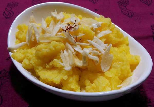मिश्रण को लगातार चलाते रहें, ताकि मिश्रण कढ़ाही में न चिपके।