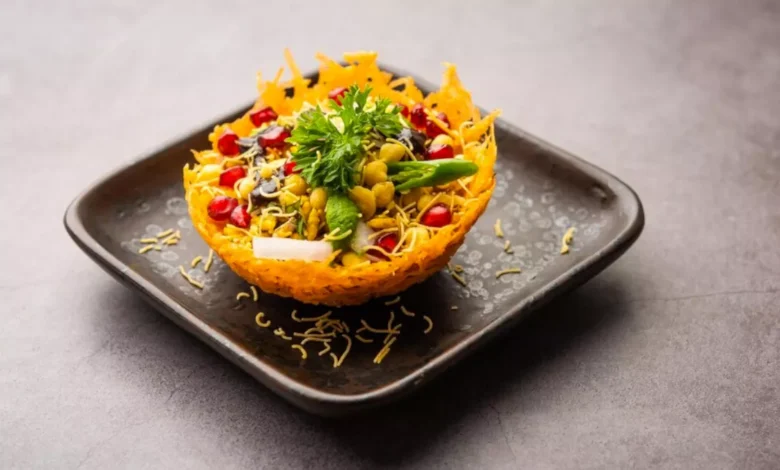 - इसके ऊपर दही, मीठी चटनी, हरी चटनी, आलू, बेसन की भुजिया, आलू की भुजिया, अदरक के लच्छे डालें।