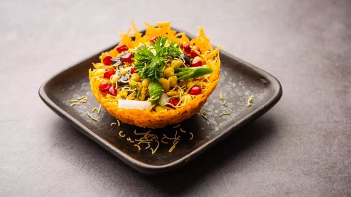 - इसके ऊपर दही, मीठी चटनी, हरी चटनी, आलू, बेसन की भुजिया, आलू की भुजिया, अदरक के लच्छे डालें।