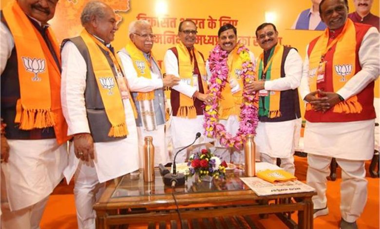 मध्य प्रदेश में चुनावों के रिजल्ट आने के बाद पिछले एक हफ्ते से चल रहे मुख्यमंत्री के नाम पर सोमवार को विराम लग गया। भारतीय जनता पार्टी के विधायकों की भोपाल में हुई बैठक में उज्जैन साउथ से विधायक मोहन यादव को अपना नेता चुन लिया। मोहन यादव मध्य प्रदेश के नए मुख्यमंत्री होंगे। राजभवन जाकर मोहन यादव ने सरकार बनाने का दावा पेश कर दिया है। राजभवन की ओर से तारीख मिलते ही शपथग्रहण समारोह होगा। माना जा रहा है कि पहले छत्तीसगढ़ फिर मध्य प्रदेश और उसके बाद राजस्थान में शपथग्रहण समारोह हो सकता है।