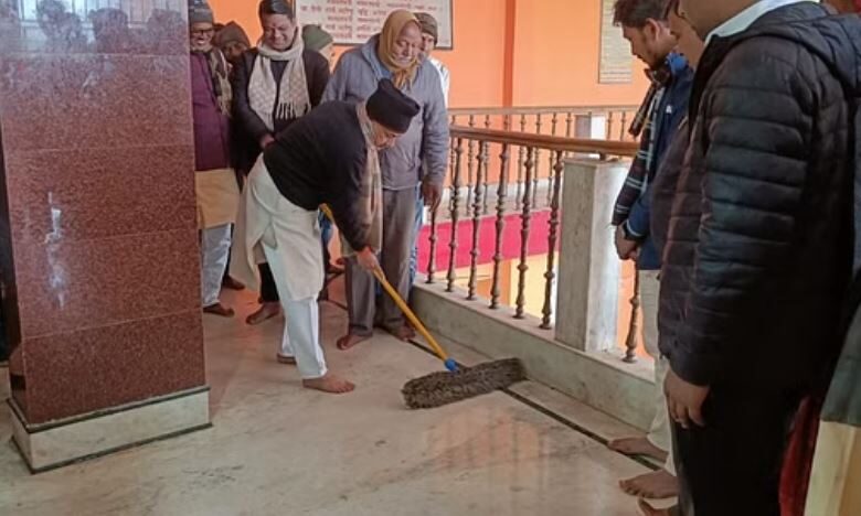सांसद सुशील कुमार सिंह ने मंदिर में की साफ-सफाई