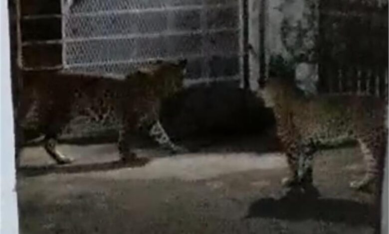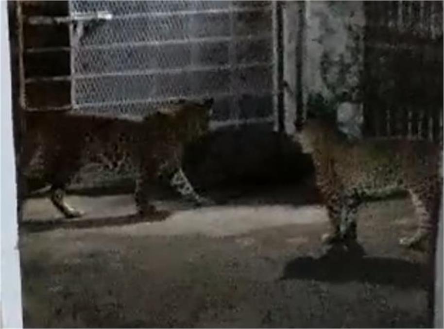 वीडियो में दिखाई दे रहा है कि तेंदुआ सड़क पर आते हैं और फिर सड़क पार कर देते हैं। इसके बाद वह मकान के अंदर घुस जाते हैं। इस दौरान मकान के अंदर मौजूद लोग चुपचाप वीडियो बना लेते हैं। जिसमें कोई तेंदुआ बाउंड्री वॉल पर तो कोई पेड़ पर कोई गेट के पास तो कोई जमीन पर बैठा हुआ दिखाई दिया है।