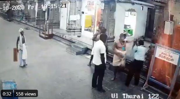 चेन्नई। तिरुचेंदुर श्री सुब्रमण्यम स्वामी देवस्थानम मंदिर (Tiruchendur Sri Subrahmanya Swami Devasthanam temple) की सुरक्षा में तैनात एक दलित (Dalit) सुरक्षा गार्ड को पुजारी के गुस्से का सामना करना पड़ा। मीडिया रिपोर्ट्स के अनुसार, पुजारी ने गार्ड से चाबी मांगी थी, जिसके बाद गार्ड ने चाभी देने से मना कर दिया। इस बात स नाराज पुजारी ने कथित तौर पर ​दलित के साथ मारपीट करने लगा। यह पूरा मामला पास में लगे सीसीअीवी कैमरे में कैद हो गया है। हालांकि, इस मारपीट को लेकर गार्ड ने अभी तक कोई मामला दर्ज नहीं कराया है।