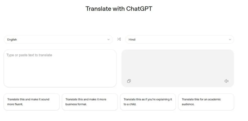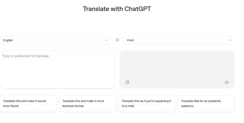 ChatGPT Translate का इंटरफेस कैसा है?