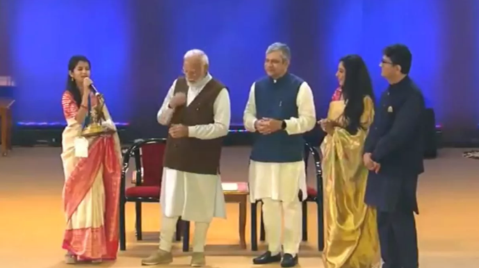 पीएम मोदी ने मैथिली ठाकुर को दिया पुरस्कार