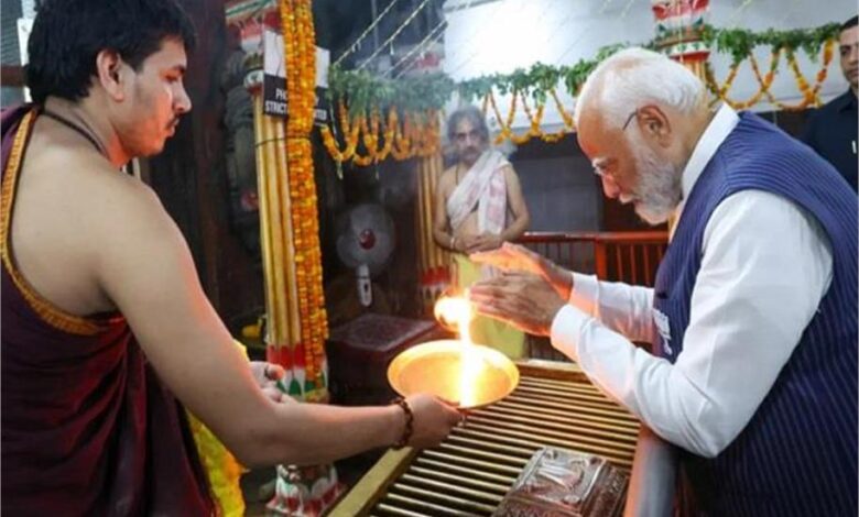 प्रधानमंत्री नरेन्द्र मोदी ने मंगलवार को यहां संकट मोचन मंदिर जाकर भगवान हनुमान की पूजा-अर्चना की। प्रधानमंत्री ‘नारी शक्ति संवाद’ कार्यक्रम संपन्न होने के बाद मुख्यमंत्री योगी आदित्यनाथ के साथ संकट मोचन मंदिर गए और पूजा-अर्चना की।