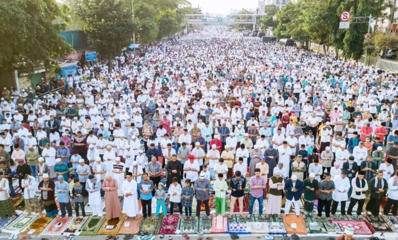 ईद-उल-फितर के मौके पर नमाज अदा करने के लिए जामा मस्जिद में श्रद्धालु इकट्ठा हुए। नमाज के बाद लोग एक दूसरे के गले मिलकर ईद की बधाई दी।