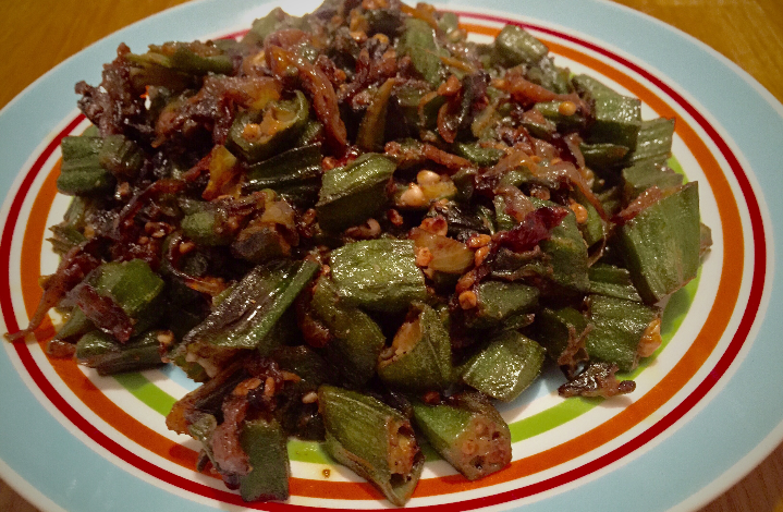 एक बाउल में भरावन की सभी सामग्री को डालें और मिलाएं। भिंडी को धोकर पोंछ लें। भिंडी के बीचोबीच एक कट लगाएं और उसमें भरावन की सामग्री को भर दें। एक पैन में तेल गर्म करें और उसमें जीरा व अदरक डालें। जब जीरा पकने लगे तो पैन में हल्के हाथों से भरी हुई भिंडी को डालें।