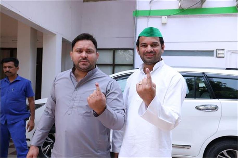 पटना में राजद नेता तेजस्वी और तेजप्रताप यादव ने किया मतदान