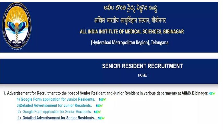एम्स बीबीनगर में सीनियर रेजिडेंट पदों पर हो रही भर्ती