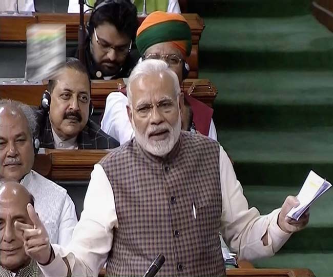 लोकसभा में प्रधानमंत्री ने बोलना ही शुरू किया था कि विपक्ष की ओर से हंगामा किया जाने लगा। विपक्ष के नेताओं द्वारा ‘झूठे भाषण बंद करो-झूठे आश्वासन बंद करो’ का नारा लगाया गया। इसपर प्रधानमंत्री मोदी ने कहा कि सिर्फ विरोध के लिए विरोध करना सही नहीं है। उन्होंने कहा, ‘कांग्रेस ने देश को पनपने नहीं दिया, इसलिए हमें लोकतंत्र का पाठ न पढ़ाए। आपके पापों की सजा आज पूरा देश भुगत रहा है।’