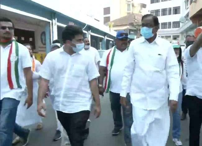घर-घर जाकर प्रचार-प्रसार करते हुए नजर आए कांग्रेस के वरिष्ठ नेता पी चिदंबरम