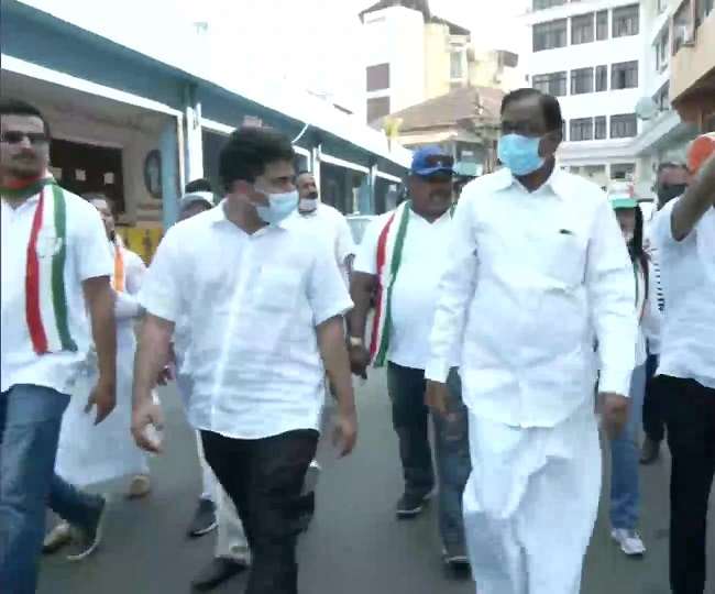 गोवा विधानसभा चुनाव 14 फरवरी को होने हैं, जबकि मतों की गिनती 10 मार्च को की जाएगी। आगामी चुनाव के लिए सभी राजनीतिक दलों ने अपनी-अपनी कमर कस ली है। गोवा विधानसभा चुनाव 2022 के लिए सभी राजनीतिक पार्टियों के बड़े-छोटे नेता जमकर प्रचार-प्रसार कर रहे हैं। इस दौरान आज पणजी में कांग्रेस के वरिष्ठ नेता पी चिदंबरम घर-घर जाकर प्रचार-प्रसार करते हुए नजर आए। पणजी की सड़कों पर नेता पी चिदंबरम पार्टी सहयोगियों संग पद यात्रा की ।
