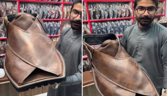 वायरल वीडियो में जो शख्स नजर आ रहा है, वो चप्पलों की दुकान में खड़ा है. वो चप्पल की खासियत बता रहा है. उसका कहना है कि चप्पल स्टॉक में है और जिसे चाहिए, वो उनसे सीधे संपर्क कर सकते हैं. शख्स चप्पल को घुमा-घुमाकर दिखा रहा है. उसे आम चप्पलों की ही तरह नीचे से सिला गया है और ऊपर का डिजाइन भी काफी बड़ा है. अकाउंट के अन्य वीडियोज को देखने से लग रहा है कि ये पाकिस्तान का वीडियो है.