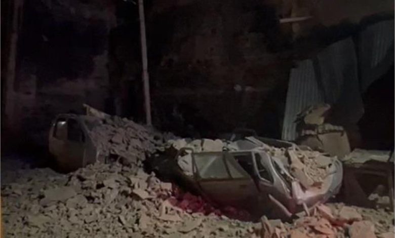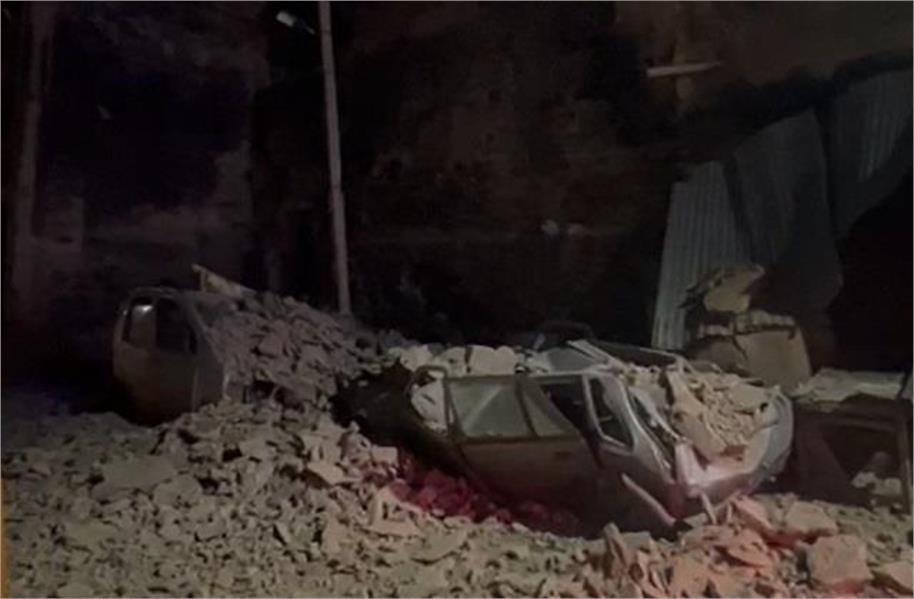 अचानक गिरी 300 वर्ष पुरानी हवेली की दिवार, मलबे के नीचे आई कार व आटो हुए ध्वस्त