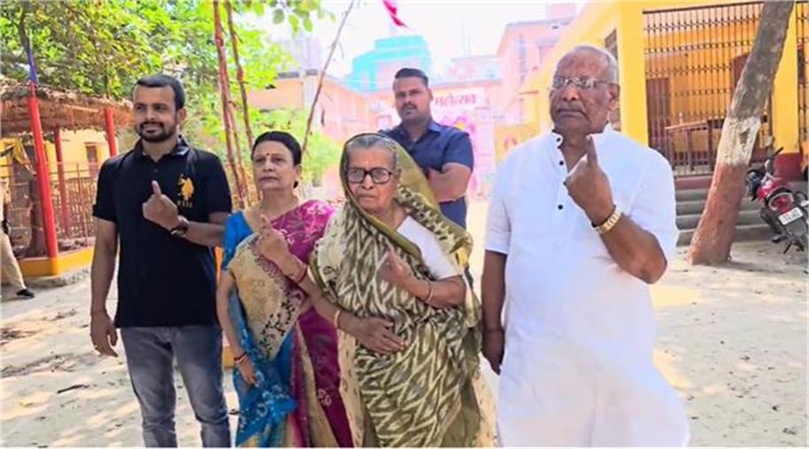 तारकिशोर प्रसाद ने अपनी बूढ़ी मां और पत्नी के साथ किया मतदान