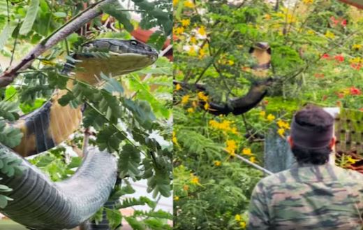 पेड़ पर बैठा 12 फीट का कोबरा, लोगों को देखते ही लगा फुफकारने, ऐसा फैलाया फन