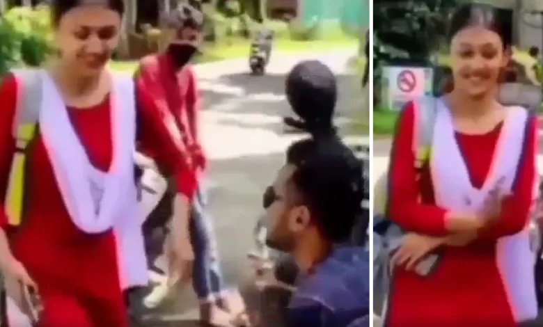 इस वीडियो को देखने के बाद आप कहेंगे कि यह एक प्रपोजल है, लेकिन ‘रोज डे’ (Rose Day) के इस वीडियो को देखने के बाद एक बात तो तय है कि आप अपनी हंसी पर काबू नहीं रख पाएंगे. जैसा कि आप वायरल वीडियो में देख सकते हैं कि एक लड़का स्कूल जाने वाली लड़की को बीच में टोकता है और प्यार से उसे गुलाब (Rose Day) देता है, लेकिन लड़की शरमा कर आगे बढ़ जाती है. हालांकि, वह कुछ कदम आगे चली जाती है और फिर वापस उस लड़के के पास आती है, जिसने उसे फूल देने के लिए घुटने पर बैठा. आखिर में लड़के के हाथ से लड़की गुलाब ले लेती है.