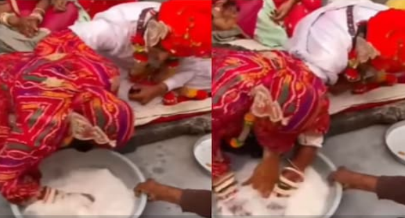 हमारे देश में शादी के बाद एक रस्म होती है, जिसमें दूल्हा-दुल्हन एक अंगूठी को दूध से भरे बर्तन में ढूंढते हैं. इस खेल में जो भी अंगूठी को पहले ढूंढ लेता है, वही इस दिलचस्प गेम का विजेता होता है. वायरल हो रहे इस वीडियो में चल तो वही रस्म रही थी, लेकिन इसका अंत ज़रा अलग तरीके से हुआ.