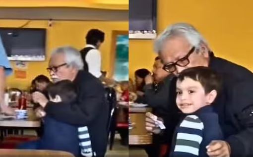 रेस्टोरेंट में अकेले खाना खा रहा था बुजुर्ग, अंजान बच्चे ने आकर लगा लिया गले