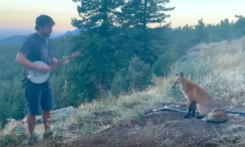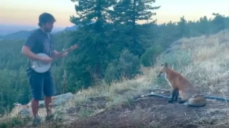 वीडियो में देखा जा सकता है कि एक शख्स बैंजो बजाता है, तभी एक लोमड़ी जंगल से निकलकर उसके पास आकर बैठ जाती है. वीडियो में देखा जा सकता है कि लोमड़ी शख्स के पास बैठकर बैंजो की धुन का आनंद ले रही है. एंडी थॉर्न नामक शख्स कोलोराडो (Colorado) की पहाड़ियों में बैंजो बजाते दिख रहे हैं. बैंजो की धुन सुनकर एक लोमड़ी वहां आ जाती है और मंत्रमुग्ध होकर बैठी दिखाई देती है.