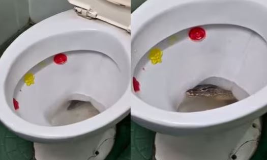टॉयलेट से झांकता दिखा खौफनाक जीव, बार-बार निकाल रहा था जीभ, कभी छुप जाता अंदर