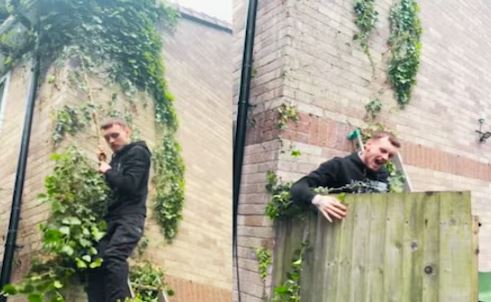 वायरल हो रहे वीडियो में आप देख सकते हैं कि एक आदमी घर पर चढ़ी हुई मोटी सी लता को शायद ट्रिम करने के लिए या हटाने के लिए चढ़ा है. वो अपना पैर घर के गेट पर रखता है और लता के सहारे खड़ा होता है. इसी बीच गेट आगे की ओर जाता है और लता कमज़ोर पड़कर टूट जाती है. उसी के सहारे खड़ा आदमी गेट से फिसलकर सीधा नीचे गिर जाता है. उसे देखकर आपको भी हंसी आ जाएगी. हालांकि उसके एक्सप्रेशन बताते हैं कि शख्स को चोट ज़बरदस्त लगी होगी.