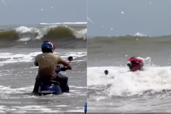 स्कूटी लेकर समुद्र में उतर गया शख्स, थोड़ी देर ठीक चली फटफटिया, फिर हो गया खौफनाक हाल
